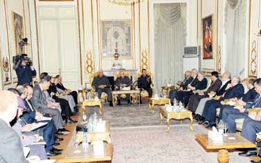 قال المجلس الأعلى للقوات المسلحة الحاكم في مصر أمس إنه لن يحكم مصر «خميني آخر»، في إشارة إلى الإمام الخميني، مؤسس الجمهورية الإسلامية في إيران. وجدّد، في لقاء مع رؤساء تحرير ومجالس إدارات الصحف القومية المصرية، الثقة في المستقبل، بعد إنجاز المهمة وتسليم القيادة إلى سلطة مدنية، وأكد المجلس على ضرورة الانطلاق إلى الأمام، بدراسة السلبيات والتخطيط للمستقبل، مع إجراء الانتخابات البرلمانية في سبتمبر، كما أكد موقفه الداعم للمطالب «المشروعة» للشعب المصري، وصولاً إلى بناء دولة عصرية تقوم على أسس من الحرية والديمقراطية، بهدف الوصول إلى بر الأمان، من خلال طرق وآليات معروفة للجميع يتم الالتقاء عندها.