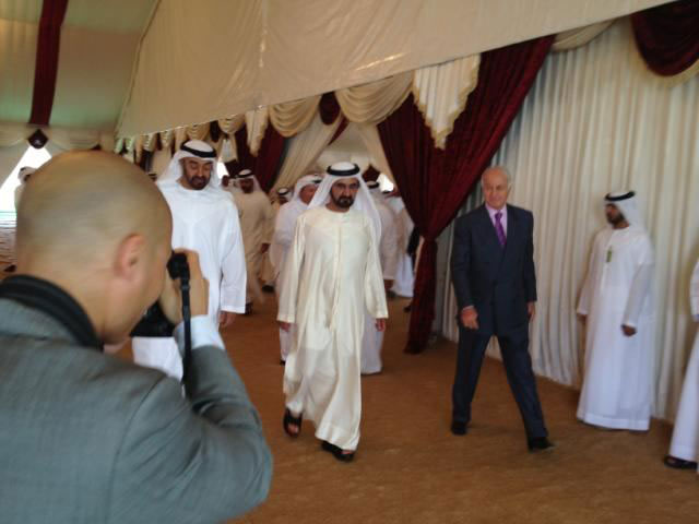 استقبل الفريق أول سمو الشيخ محمد بن زايد آل نهيان ولي عهد أبوظبي نائب القائد الأعلى للقوات المسلحة اليوم أخاه صاحب السمو الشيخ محمد بن راشد آل مكتوم نائب رئيس الدولة رئيس مجلس الوزراء حاكم دبي " رعاه الله " في مجلس سموه في منطقة الذيد في إمارة الشارقة.