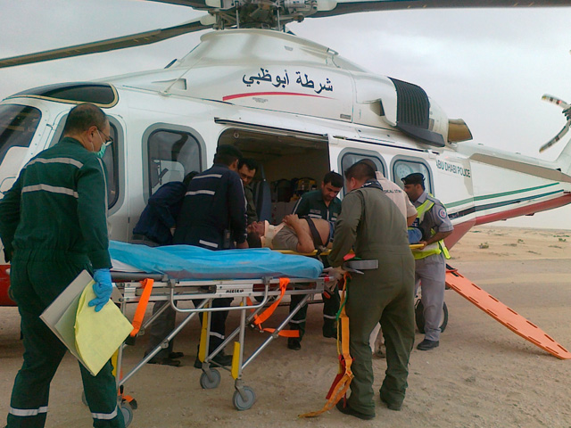 وفي السياق نفسه، تمكنت "جناح الجو" من نقل أسرة آسيوية، تعرّض أفرادها الثلاثة، وهم شخصان (40 و25 سنة) وطفل (6 سنوات) لحادث مروري بالمنطقة الغربية، وتم نقلهم إلى مستشفى مدينة زايد من خلال طائرة مجهزّة بالإسعافات الأولية، حيث تنوعت إصاباتهم بين كسور وكدمات مختلفة.