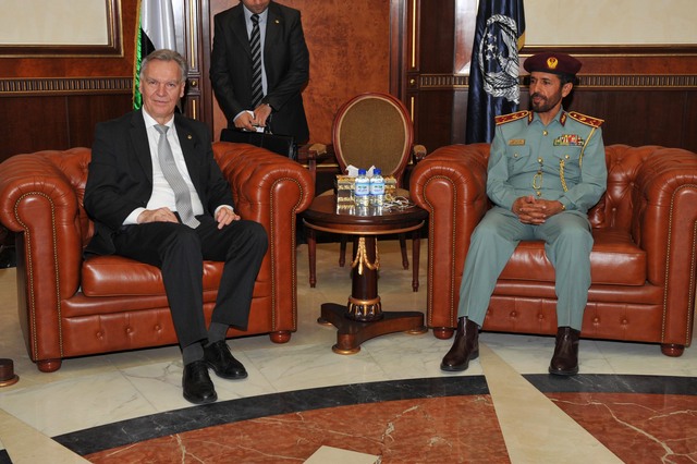 حضر المقابلة العميد محمد غدير الكتبي مدير إدارة التحقيق الاتحادي، والعقيد الركن الدكتور علي سالم الطنيجي مدير إدارة التدريب بوزارة الداخلية، ومن الجانب الألماني شتيفن روس مدير إدارة العلاقات الدولية، الرائد هولجر فارنونغ ضابط ارتباط المكتب الاتحادي للشرطة الجنائية الألمانية لدى الدولة.