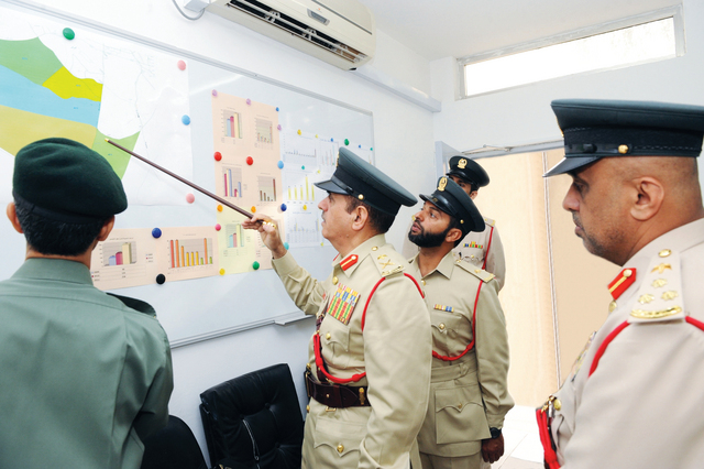 جاء ذلك خلال الجولة التفتيشية التي قام بها اللواء خلفان، ضمن برنامج التفتيش السنوي للإدارات العامة ومراكز الشرطة ومخافرها، يرافقه العميد خليل إبراهيم المنصوري، مدير الإدارة العامة للتحريات والمباحث الجنائية، والعقيد الدكتور محمد ناصر عبدالرزاق، نائب مدير الإدارة العامة للتحريات والمباحث الجنائية لشؤون المراكز والمخافر، والعقيد علي غانم مدير مركز بر دبي، والمقدم خالد بن سليمان، مدير إدارة الرقابة والتفتيش في الإدارة العامة لحقوق الإنسان والرائد سعيد هلال الخييلي ضابط مخفر شرطة الفقع، وعدد من الضباط.