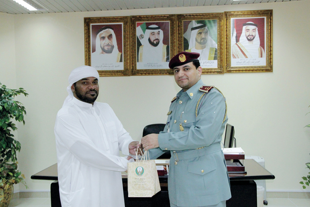 وفي نهاية اللقاء قدم الملازم أول أحمد المنهالي هدية تذكارية للمراجع، الذي بدوره وجه الشكر للإدارة على خدماتها المتميزة لذوي الإعاقة.