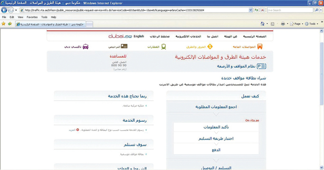 والاستعلام ودفع المخالفات من خلال رقم الملف المروري، أو رقم اللوحة، أو رقم المخالفة أو رقم رخصة القيادة، وكذلك الاستفسار عن رصيد بطاقة التعرفة الموحدة (نول)، إضافة إلى الاستعلام عن تعرفة استخدام مترو دبي عن طريق تحديد محطة الانطلاق والوصول، بالإضافة إلى اختيار فئة بطاقة (نول)، إلى جانب الاستعلام عن كمية انبعاث الكربون من السيارات بالمقارنة مع المقاييس العالمية، لتشجيع السكان على الإسهام في الحفاظ على البيئة).