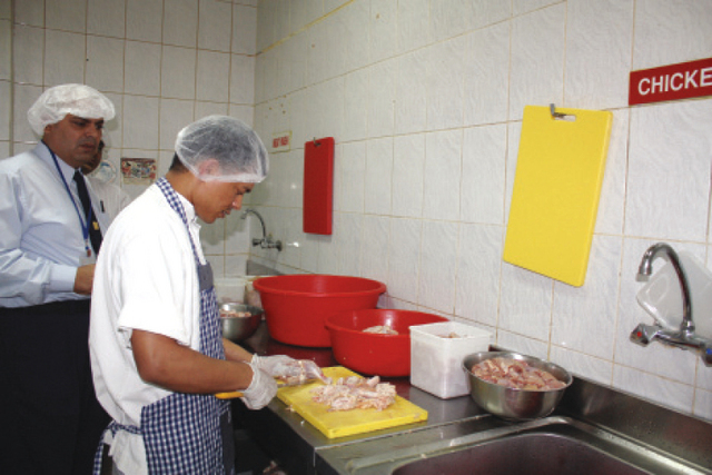 ويواصل المفتش ابو السعود عمله بعد انتهائه من التفحص بعينيه فيطلب شهادات كافة العاملين في المؤسسة من موظفين وطباخين ومنظفين وغيرهم للتأكد من سريان بطاقاتهم الصحية ، ومن عدم اصابة أي منهم بأي نوع من المرض كي لا يتسبب ذلك الى انتقال مرضه عن طريق الطعام الى المستهلك، وبعد التأكد من كافة البطاقات ، يتأكد من نظافة العاملين ونظافة ملبسهم واظافرهم ، بحيث لا تكون طويلة او مكسورة او مصابة حتى لا تكون مكانا لتجمع الميكروبات ومن ثم انتقالها الى الطعام.