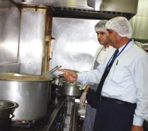 وتبدأ عملية التفتيش منذ اللحظة الاولى لدخول المفتش من باب المؤسسة الخارجي مرورا بالصالة وانتهاء بالمطبخ، حيث ان عين المفتش ابو السعود لا تكف عن النظر في كافة الاتجاهات للتأكد من ان كل شيء يسير حسب الاصول بدءا من السقف مرورا بالجدران وانتهاء بالارض والعاملين عليها وبكل ما تحمله.