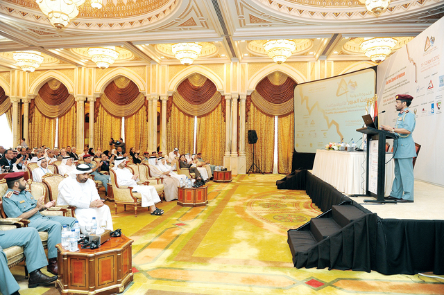 أكد اللواء الركن خليفة حارب الخييلي وكيل وزارة الداخلية المساعد للموارد والخدمات المساندة خلال افتتاح الندوة أمس ان الحوادث المرورية أصبحت تمثل وبشكل كبير هاجساً وقلقاً لكافة أفراد المجتمع، وأصبحت واحدة من أهم المشكلات التي تستنزف الموارد المادية والطاقات البشرية وتستهدف المجتمعات في أهم مقومات الحياة والذي هو العنصر البشري إضافة إلى ما تخلفه من مشاكل اجتماعية ونفسية وخسائر مادية ضخمة، مما أصبح لزاماَ العمل على إيجاد الحلول والاقتراحات ووضعها موضع التنفيذ للحد من هذه الحوادث أو على أقل تقدير معالجة أسبابها والتخفيف من آثارها السلبية على الفرد والمجتمع.