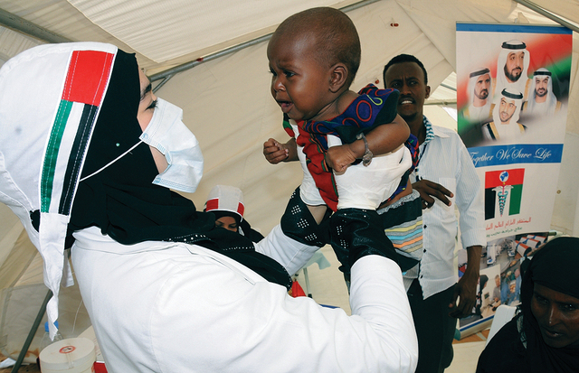 وأضاف ان فريق الإمارات الطبي التطوعي قدم خدماته في مخيمات اللاجئين حيث ثمنت الفعاليات الشعبية والمسئولون الصوماليون مبادرة دولة الإمارات وجهود كوادرها الطبية وأشادوا بجهود الإمارات الإغاثية التى قدمتها للشعب الصومالي حيث نفذت مشاريع إغاثة غذائية وطبية في وقت سابق لإغاثة اللاجئين وتسهيل عودتهم الى قراهم .