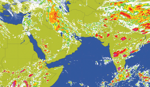 وتوقع المصدر أن تزداد السحب الركامية على أجواء الدولة على فترات ليستمر سقوط الأمطار والتي تشتد هطولا يوم السبت المقبل والرياح معتدلة إلى نشطة السرعة، وتكون مثيرة للغبار والأتربة أحيانا خاصة على المناطق المكشوفة والبحر متوسط الموج يضطرب أحيانا في الخليج العربي، وخفيف إلى متوسط الموج في بحر عمان.