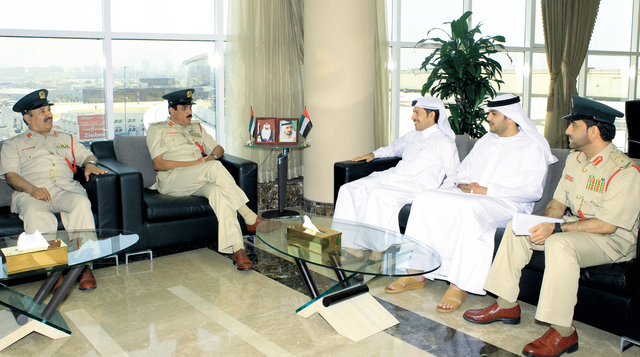 بحث اللواء خميس مطر المزينة، نائب القائد العام لشرطة دبي، واللواء عبدالرحمن محمد رفيع مدير الإدارة العامة لخدمة المجتمع، مع العقيد صقر راشد المريخي مدير مركز المعلومات الجنائية لمكافحة المخدرات لمجلس التعاون لدول الخليج العربية، سبل تعزيز التعاون، بحضور المقدم الدكتور احمد السعدي، مدير إدارة خدمة التدريب الدولي بالإدارة العامة لخدمة المجتمع بالنيابة.