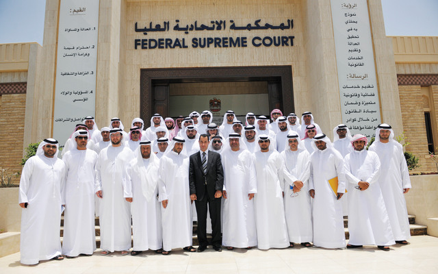 نظمت كلية القانون بجامعة العين للعلوم والتكنولوجيا زيارات ميدانية إلى المحكمة الاتحادية العليا في إطار تفعيل بنود الاتفاقية الموقعة بين الطرفين، والتي تهدف إلى تبادل الزيارات لتأمين التدريب العملي للطلبة، إذ استمر البرنامج التدريبي لثلاثة أيام تضمن جولة للطلبة في أرجاء المحكمة للتعرف على أقسامها وغرفها المختلفة والتعرف على الاختصاصات التي يقدمها المكتب الفني، حيث لخص القاضي غريب يونس اختصاصات المكتب الفني، إلى جانب إطلاع الطلبة على أجواء المحاكم الفعلية بحضور جلسة قضائية، في حين اختتمت نشاطات البرنامج بلقاء القاضي شهاب الحمادي ، رئيس دائرة أمن الدولة في المحكمة الاتحادية العليا الذي وجه الطلبة نحو مبادئ العمل القانون وآلياته، وطبيعة المهام المنطوة بهم مستقبلاً ومسؤولياتهم تجاه تطوير معارفهم ومهاراتهم، ليكونوا خريجين مؤهلين بأفضل المعايير العلميـة والعمليـة.