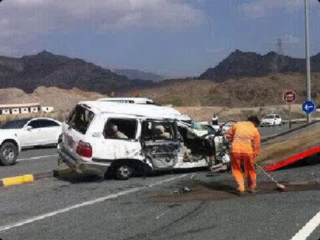 وفي تفاصيل الحادث أوضح القائد العام لشرطة الفجيرة العميد محمد أحمد بن غانم الكعبي: أن مركز شرطة دبا تلقى في تمام الساعة الواحدة و21 دقيقة ظهرا بلاغا يفيد بوقوع حادث اصطدام مركبة بعمود إنارة على طريق ( الطويين – دبا ).