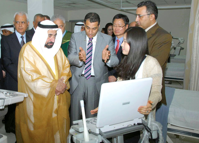 وأشار صاحب السمو حاكم الشارقة إلى أن مستشفى الأسنان الجامعي، مجهز بأحدث المعدات لعلاج أمراض الفم وتركيبات الأسنان في المنطقة كلها ويتردد عليه آلاف المرضى شهريا وكذلك مستشفى الجامعة الذي وصفه بالصرح العظيم الذي يحتوي على أفضل الأجهزة الطبية المتقدمة للتشخيص التصويري والتحليل المعملي والتدخل الطبي والجراحي الدقيق.