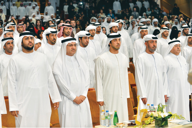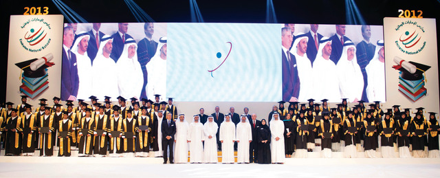 جاء ذلك في تصريحات لسموه لدى تشريفه مساء أمس بـ" قصر الإمارات " حفل تخريج الدفعة السادسة من طلبة وطالبات الصف الثاني عشر لـ"مدارس الإمارات الوطنية" البالغ عددهم 74 طالباً وطالبة منهم 40 طالباً و34 طالبة وذلك بحضور الشيخ ذياب بن محمد بن زايد آل نهيان ومعالي حميد بن محمد عبيد القطامي وزير التربية والتعليم ومعالي أحمد محمد الحميري الأمين العام لوزارة شؤون الرئاسة رئيس مجلس إدارة " مدارس الإمارات الوطنية " ومعالي حمد المدفع الأمين العام لشؤون المجلس الأعلى ومحمد خلف المزروعي مستشار الثقافة والتراث بديوان ولي عهد أبوظبي والوكلاء بوزارة شؤون الرئاسة والقيادات التعليمية بالدولة وأولياء أمور الخريجين.
