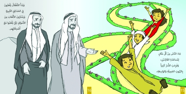 جاء الناس من كل مكان، لمساعدة القائدين، وفرحت الأسر كثيراً بالبيوت الجميلة والواسعة، وبــدأ الأطفال يلعبون في الحدائق الكبيرة ويشترون الألعاب من الأسواق لكي يلعبوا مع أصدقائهم.