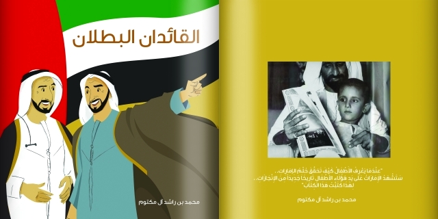 أصدر صاحب السمو الشيخ محمد بن راشد آل مكتوم، نائب رئيس الدولة رئيس مجلس الوزراء حاكــم دبــي، كتاباً للأطفال بعنوان "القائدان البطــلان"، إيماناً من سموه بأهمية دورهم المستقبلي فـي تعزيز نهضة الدولة ورفعتها، وقال سمـوه في مقــدمة الكتاب: " عندما يعرف الأطفال كيف تحقق حلم الإمارات.. ستشهد الإمارات على يد هؤلاء الأطفال تاريخاً جديداً من الإنجازات.. لهذا كُتب هذا الكتاب".