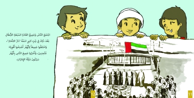 اجتمع الناس وجميع القادة السبعة الأبطال بعد ذلك في بيت كبير اسمه "دار الاتحاد" واحتفلوا جميعاً، لأنهم أصبحوا أقوياء متحدين، وأخبروا جميع الناس بأنهم سيبنون دولة الإمارات.