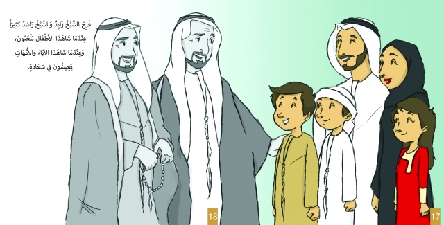 فرح الشيخ زايد والشيخ راشد كثيراً، عندما شاهدا الآباء والأمهات يعيشون في سعادة. وختم سموه القصة للأطفال بأمنية للبطلين أن يحافظ الأطفال علــى هـذه الدولة، وأن يسعوا دائماً لتحقيق أحلامهم هم أيضاً عندما يكبرون، لأن الأحلام هي البداية وليس هناك أي حلم لا يمكن تحقيقه.