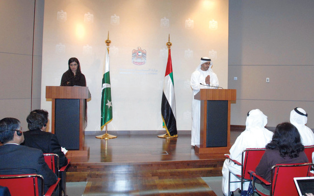 جاء ذلك خلال المؤتمر الصحفي الذي عقد أمس بمقر وزارة الخارجية في أبوظبي بين سموه ووزيرة الخارجية الباكستانية حنا رباني بمناسبة زيارتها الدولة والوفد المرافق لها المشارك في أعمال الاجتماع العاشر للجنة المشتركة بين الإمارات وباكستان.