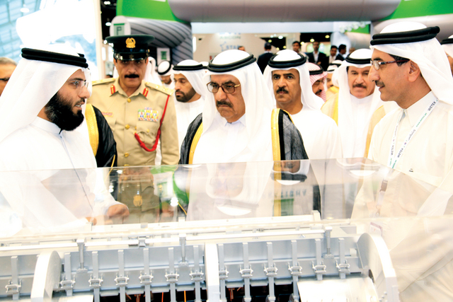 وقام سمو الشيخ حمدان بن راشد آل مكتوم نائب حاكم دبي وزير المالية، ورئيس مجلس إدارة «دوبال» أمس، خلال افتتاحه الرسمي لدورة هذا العام لمعرض تكنولوجيا الطاقة والمياه والبيئة WETEX 2012، بزيارة وتفقد جناح مؤسسة دبي للألمنيوم «دوبال».