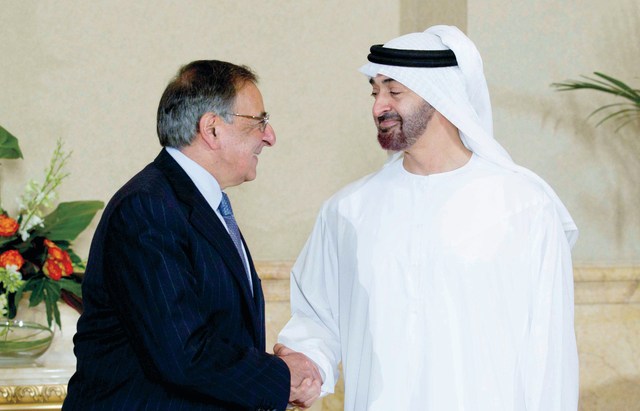 استقبل الفريق أول سمو الشيخ محمد بن زايد آل نهيان ولي عهد أبوظبي، نائب القائد الأعلى للقوات المسلحة، بقصر الإمارات، ليون بانيتا وزير الدفاع الأميركي الذي يزور البلاد حالياً.