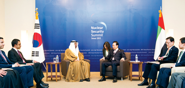 وكان الفريق أول سمو الشيخ محمد بن زايد آل نهيان ولي عهد أبوظبي نائب القائد الأعلى للقوات المسلحة وصل إلى العاصمة الكورية الجنوبية سيئول على رأس وفد دولة الإمارات العربية المتحدة لحضور " قمة الأمن النووي 2012 " التي تنطلق أعمالها اليوم وتستمر مدة يومين.. بمشاركة أكثر من 53 دولة وعدد من قادة وزعماء العالم وأربعة رؤساء منظمات دولية بمن فيهم أمين عام الأمم المتحدة بان كي مون.