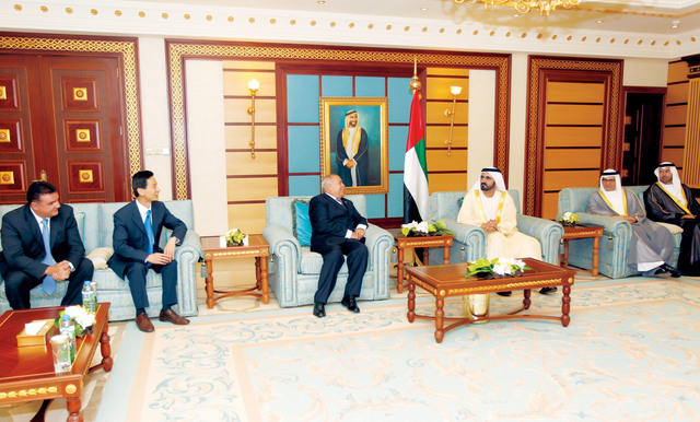 استقبل صاحب السمو الشيخ محــــمد بن راشد آل مكتوم، نائب رئيس الدولة رئيس مجلس الوزراء حاكم دبي، رعاه الله، في قصر الرئاسة صباح أمس، السفراء الجدد لكل من الولايات المتحدة المكسيكية، وجمهورية الصين الشعبية، وجمهورية قبرص لدى الدولة. فقد رحب سموه بفرانسيسكو جافيير إسكوبار السفير المكسيكي، وهوانج جه مين السفير الصيني، وألبيدو فوروس السفير القبرصي.. متمنياً لهم إقامة طيبة على أرض الإمارات ونجاحاً مميزاً في أداء مهامهم على صعيد توطيد أواصر الصداقة بين شعوبهم وشعب الإمارات وتعزيز علاقات التعاون الثقافي والاقتصادي والسياحي بما يخدم المصالح المشتركة لشعبنا وشعوبهم.