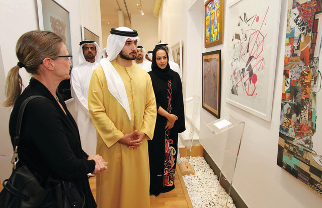 دشن سمو الشيخ ماجد بن محمد بن راشد آل مكتوم رئيس هيئة دبي للثقافة والفنون أمس في صالة ذي آرا جاليري - داون تاون دبي المطلة على برج خليفة المعرض الخيري السنوي الثاني "آرت فور سايت" لمؤسسة نور دبي - المبادرة الخيرية في مجال مكافحة العمى على مستوى العالم .