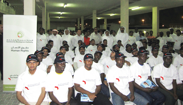 نظمت هيئة تنمية المجتمع في دبي عددا من فعاليات التوعية لعمال إحدى الشركات في منطقة القوز الصناعية،وذلك على مدى يومي 30 أبريل و1 مايو الجاري بعنوان (( الحد من تعاطي المواد الكحولية )) حضره قرابة 500 عامل ، وذلك بالتعاون مع الإدارة العامة لمكافحة المخدرات في شرطة دبي وبمناسبة اليوم العالمي للعمال والذي يصادف الأول من مايو من كل عام،وضمن مبادرة ( أكرم العامل ) التي أطلقتها هيئة تنمية المجتمع في هذا العام.