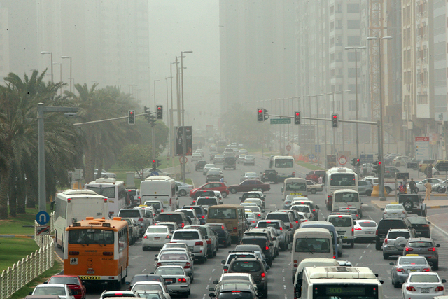 دعوة السائقين إلى القيادة بحذر دعت إدارات المرور في الفجيرة وعجمان ورأس الخيمة السائقين إلى القيادة بحذر على الطرقات وبعد أبوظبي والإمارات الأخرى، اجتاحت موجة غبار سماء الفجيرة ومدن الشرقية، حيث بدأ دخولها التدريجي وبشكل مفاجئ المنطقة عصر أمس، صاحبها هبوب رياح متوسطة السرعة وانخفاض في درجات الحرارة ونسبة الرطوبة، وصبغت الأجواء باللون المغبر والأتربة متسببة في تدني مدى الرؤية الأفقية وفي عزوف الناس عن ارتياد المناطق المفتوحة وخصوصاً الأماكن الترفيهية كالكورنيش والحدائق.