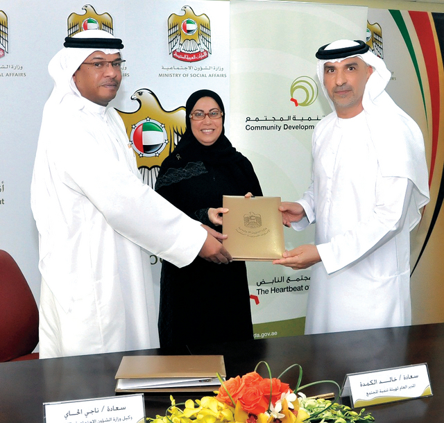ووقع مذكرة التفاهم كل من ناجي الحاي وكيل وزارة الشؤون الاجتماعية بالإنابة ، وخالد الكمده مدير عام هيئة تنمية المجتمع في دبي، برعاية معالي مريم الرومي وزيرة الشؤون الاجتماعية.