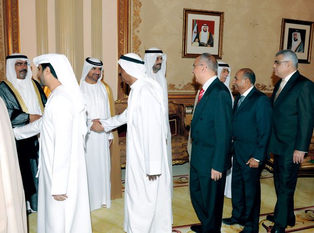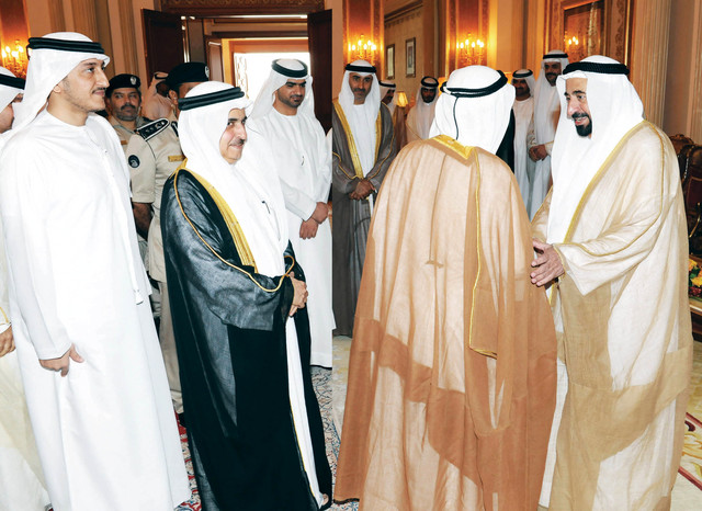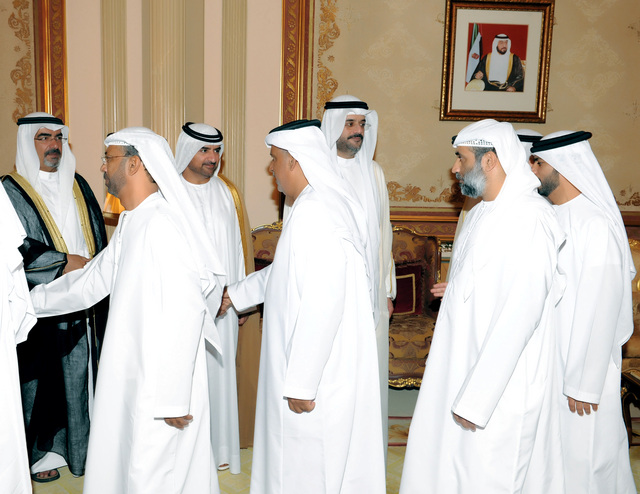 فقد استقبل سموه عددا من الشيوخ وكبار رجالات الدولة والمعالي الوزراء وعددا من كبار الشخصيات ورجالات الدولة ومن شيوخ وأبناء القبائل، كما استقبل صاحب السمو حاكم الشارقة معالي محمد أحمد المر رئيس المجلس الوطني الاتحادي، ومعالي حميد محمد عبيد القطامي وزير التربية والتعليم، ومعالي عبدالرحمن محمد العويس وزير الثقافة والشباب وتنمية المجتمع، والفريق سيف عبدالله الشعفار وكيل وزارة الداخلية، وعبدالله بن محمد العثمان سفير دولة قطر لدى الدولة، الذين قدموا أسمى آيات التهاني والتبريكات لسموه بمناسبة عيد الأضحى المبارك، متمنين له موفور الصحة .