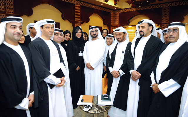 وفي قاعة الاجتماعات وأمام صاحب السمو نائب رئيس الدولة رئيس مجلس الوزراء حاكم دبي أدى القاضيان المواطنان محمد عبيد سليمان المطوع وأحمد محمود الحاج محمد اليمين القانونية لمباشرة عملهما في محاكم دبي معاهدين الله وسموه بأن يحكموا بين الناس بالعدل وأن يحترموا القوانين وأن يلتزموا سلوك القاضي الشريف. وقد تمنى سموه للقاضيين النجاح في أداء رسالتهما الوطنية والوظيفية على أكمل وجه.