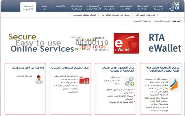 وقال السيد عبد الله المدني، المدير التنفيذي لقطاع الدعم الفني المؤسسي بالهيئة: "تقوم الشركة بفتح حساب لمحفظة إلكترونية بالهيئة، وهو حساب مدين (خصم) يمكن إنشاؤه عبر موقع نول الالكتروني ؛حيث يمكن للشركة أن تودع أي مبلغ تشاء بهذا الحساب، ومن ثم يكمنها حسب اختيارها استخدام الرصيد المتوفر في حسابها لسداد رسوم خدمات هيئة الطرق والمواصلات، وعلى المدى البعيد سيكون بوسع الشركات استخدام المحفظة تلك لسداد أي خدمة توفرها هيئة الطرق والمواصلات، لكن في الوقت الحاضر سيقتصر استخدام الرصيد فقط على سداد رسوم خدمات مؤسسة الترخيص مثل تجديد تسجيل مركبات الشركة."
