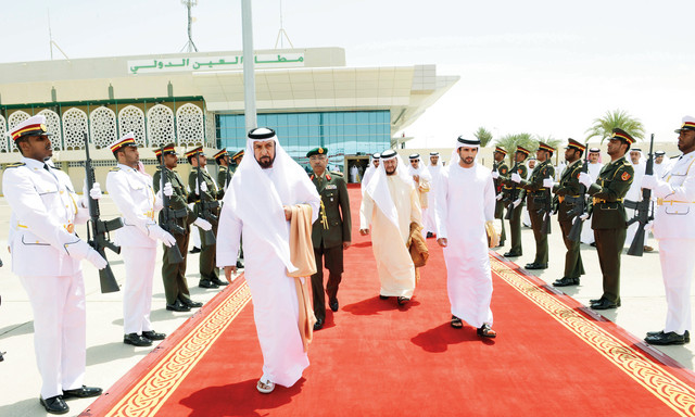 وكان في مقدمة مودعي صاحب السمو رئيس الدولة " حفظه الله " سمو الشيخ سلطان بن زايد آل نهيان ممثل صاحب السمو رئيس الدولة وسمو الشيخ حمدان بن محمد بن راشد آل مكتوم ولي عهد دبي وسمو الشيخ مكتوم بن محمد بن راشد آل مكتوم نائب حاكم دبي. كما كان في وداع رئيس الدولة.. سمو الشيخ طحنون بن محمد آل نهيان ممثل حاكم أبوظبي في المنطقة الشرقية وسمو الشيخ سيف بن محمد آل نهيان وسمو الشيخ سرور بن محمد آل نهيان.