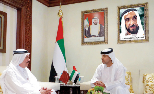 وثمن سمو الشيخ هزاع بن زايد آل نهيان الجهود التي بذلها السفير القطري في خدمة ودعم العلاقات الأخوية القائمة بين دولة الإمارات العربية المتحدة ودولة قطر، معرباً سموه عن تمنياته له بالتوفيق والنجاح في مهامه المستقبلية.