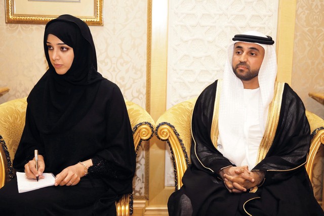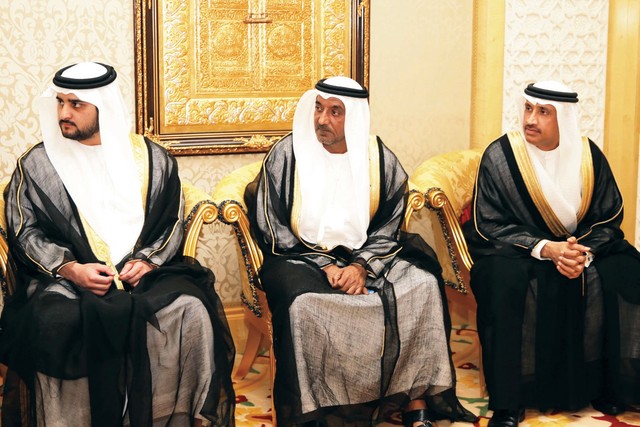 ومعالي ريم بنت إبراهيم الهاشمي وزيرة دولة ومعالي محمد إبراهيم الشيباني مدير عام ديوان صاحب السمو حاكم دبي وخليفة سعيد سلمان مدير عام دائرة التشريفات والضيافة بدبي ودومينيك جيرمي السفير البريطاني لدى الدولة وإدوارد هوبارت القنصل البريطاني العام في دبي.