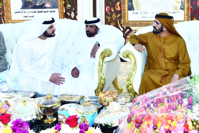 حضر صاحب السمو الشيخ محمد بن راشد آل مكتوم نائب رئيس الدولة رئيس مجلس الوزراء حاكم دبي، رعاه الله، وسمو الشيخ حمدان بن راشد آل مكتوم نائب حاكم دبي وزير المالية وسمو الشيخ مكتوم بن محمد بن راشد آل مكتوم نائب حاكم دبي وسمو الشيخ أحمد بن محمد بن راشد آل مكتوم رئيس مؤسسة محمد بن راشد آل مكتوم حفل الاستقبال الذي أقامه مايد بن بليشه الفلاسي بمناسبة زفاف نجله علي، على كريمة عبدالله بن حميد الشامسي.