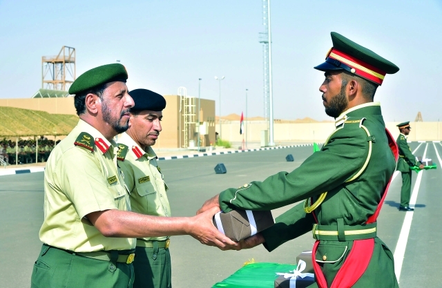 وقام اللواء الركن سيف المسافري بتوزيع الجوائز على أوائل الدفعة ثم ادى الخريجون قسم الولاء لرئيس الدولة والوطن.