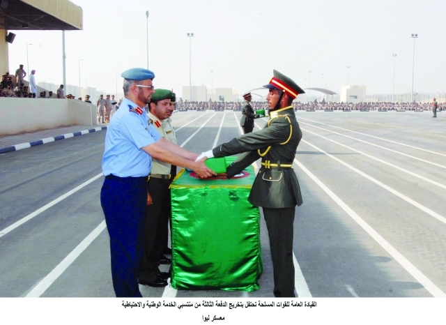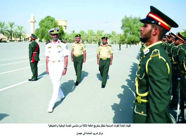 احتفلت القيادة العامة للقوات المسلحة أمس بتخريج الدفعة الثالثة من منتسبي الخدمة الوطنية والاحتياطية بعد انتهاء فترة التدريب الأساسي التي استمرت 3 أشهر في كل من مراكز التدريب الأربعة على مستوى الدولة وهي مركز سيح اللحمة في العين ومركز تدريب المستجدين في العين ومركز تدريب معسكر ليوا في المنطقة الغربية ومركز تدريب المنامة في عجمان.