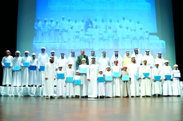 شهد الفريق سمو الشيخ سيف بن زايد آل نهيان نائب رئيس مجلس الوزراء وزير الداخلية رئيس نادي بني ياس الرياضي الثقافي، مساء أمس على المسرح الوطني في أبوظبي، الحفل الختامي للدورة الأولى لجائزة التحبير للقرآن الكريم وعلومه أبوظبي 2015.