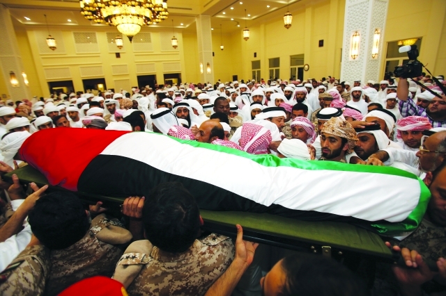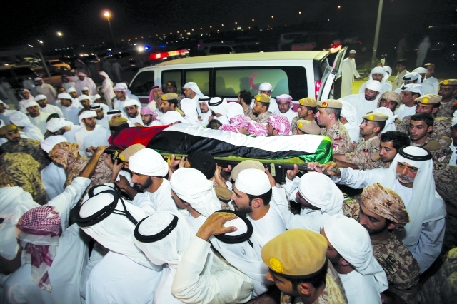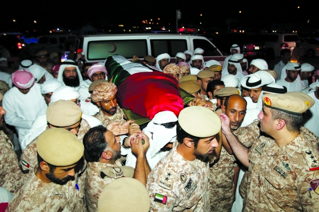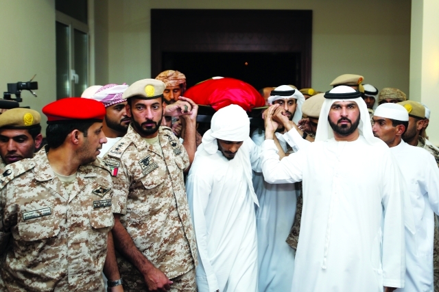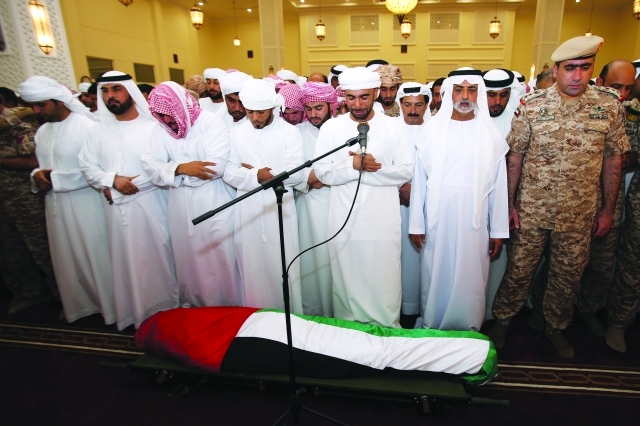 وكان جثمان الشهيد وصل أمس إلى مطار البطين بأبوظبي على متن طائرة عسكرية تابعة للقوات الجوية والدفاع الجوي يرافقه عدد من ضباط وضباط صف القوات المسلحة.