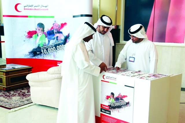 فريق الهلال الأحمر الإماراتي في مدينة العين انتشر ضمن 40 موقعاً مختلفاً لاستقبال التبرعات المادية والعينية من المواطنين والمقيمين ضمن الحملة التي أطلقتها هيئة الهلال الأحمر تحت شعار «عونك يا يمن»،