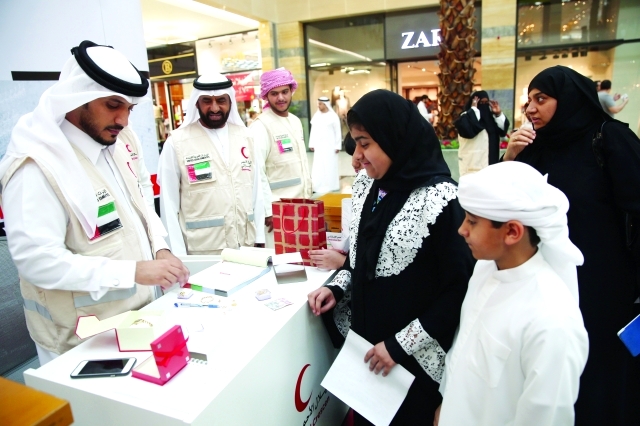 وبدأ الهلال الأحمر الإماراتي في استقبال التبرعات المادية والعينية في عدة مراكز تسوق في دبي من الساعة الثانية ظهراً حتى منتصف الليل وشهدت المنطقة المخصصة للتبرعات إقبالاً كبيراً من العائلات والأطفال الذين حرصوا على حمل البطاطين والملابس والأحذية من منازلهم وجلبها إلى هناك بالإضافة إلى التبرعات المادية.