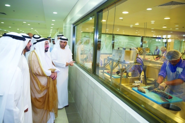 وعرج صاحب السمو الشيخ الدكتور سلطان بن محمد القاسمي على قسم بيع اللحوم والذي يحوي 76 محلاً لبيع الدواجن واللحوم، وقسم بيع الخضار والفواكه الذي اشتمل على 212 محلاً، ثم انتقل للطابق العلوي من مبنى السوق متفقداً مكاتب إدارة سوق الجبيل ومكاتب جمعية الشارقة للصيادين.