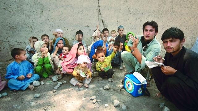 وقد أشرفت إدارة المشروع الإماراتي لمساعدة باكستان على الجهود الميدانية لتنفيذ حملات التطعيم في مختلف الأقاليم الباكستانية بمشاركة أكثر من 3205 أطباء و12765 مراقباً و123487 فرق تطعيم و21116 فرد أمن و22928 من فرق الإدارة والتنسيق.. وتم خلالها استخدام خيارين لإيصال اللقاحات وتطعيم الأطفال.. الأول من خلال فرق التطعيم الثابتة في المراكز الصحية والثاني من خلال فرق التطعيم المتنقلة التي خصصت لتغطية المناطق والقرى التي لا يستطيع سكانها الوصول إلى مراكز التطعيم الرئيسية، كما تم فتح مواقع متنقلة للتطعيم في مخيمات النازحين وعلى الطرق والمراكز الحدودية الفاصلة بين المناطق والمدن الرئيسية.