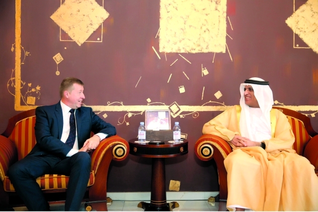حضر اللقاء.. الشيخ عبدالله بن حميد بن عبدالله القاسمي رئيس مكتب صاحب السمو حاكم رأس الخيمة ومحمد أحمد الكيت المستشار في الديوان الأميري.