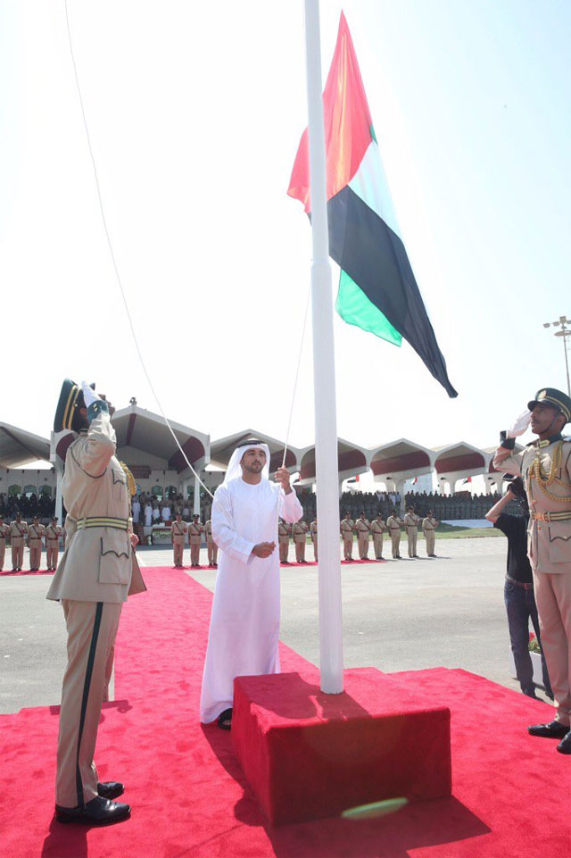 جاء ذلك خلال رفع سمو ولي عهد دبي علم الدولة على سارية مقر أكاديمية شرطة دبي بحضور سعادة اللواء خميس مطر المزينة القائد العام لشرطة دبي ومساعدو القائد العام ومديرو الإدارات العامة وكبار الضباط وجمع من منتسبي أكاديمية شرطة دبي.