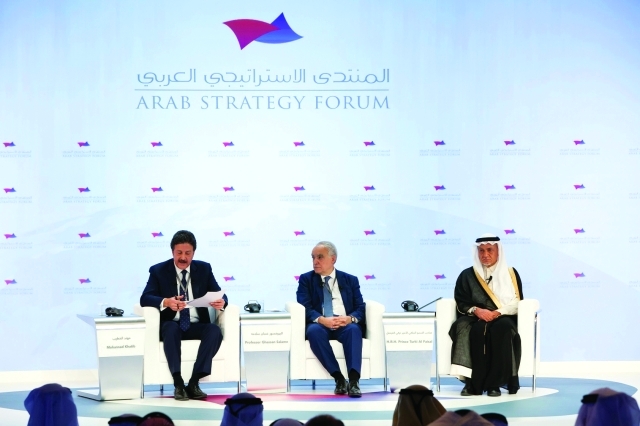 تطرقت الجلسة الرابعة من جلسات المنتدى الاستراتيجي العربي إلى استشراف المستقبل السياسي للعالم العربي، واستضافت الجلسة رئيس مجلس إدارة مركز الملك فيصل للبحوث والدراسات الإسلامية الأمير تركي الفيصل وأستاذ العلاقات الدولية في معهد العلوم السياسية في باريس البروفيسور غسان سلامة، واضعين نظرة غالبت التشاؤم بمسحة من التفاؤل والأمل بالشباب.