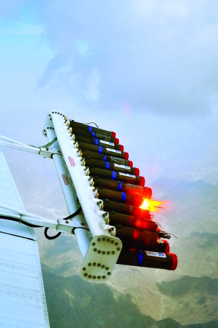 وعلى مدى الـ15 ساعة التالية، أقلعت 6 طائرات ذات محركين، من مطار إمارة العين شرقي دولة الإمارات، وحلقت أكثر من مرة قرب هذه السحب، وأطلقت 162 عبوة محملة بجزيئات صغيرة جدا من كلوريد البوتاسيوم وكلوريد الصوديوم، وأدى ذلك إلى تساقط أمطار خفيفة في معظم أنحاء الدولة.
