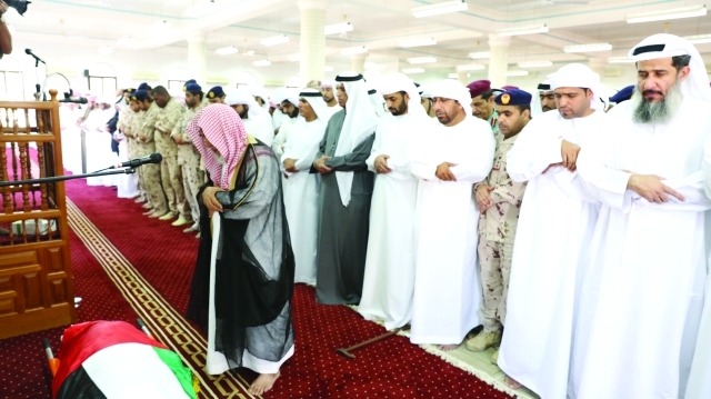 كما أدى الصلاة إلى جانب سموه، الشيخ أحمد بن سعود بن صقر القاسمي، والمهندس الشيخ سالم بن سلطان بن صقر القاسمي، رئيس دائرة الطيران المدني، والشيخ صقر بن محمد بن صقر القاسمي، ودعا الجميع الله عز وجل أن يتغمد شهيد الوطن بواسع رحمته، وأن يسكنه فسيح جناته مع الشهداء والصديقين والأبرار، وأن يلهم ذويه الصبر والسلوان.
